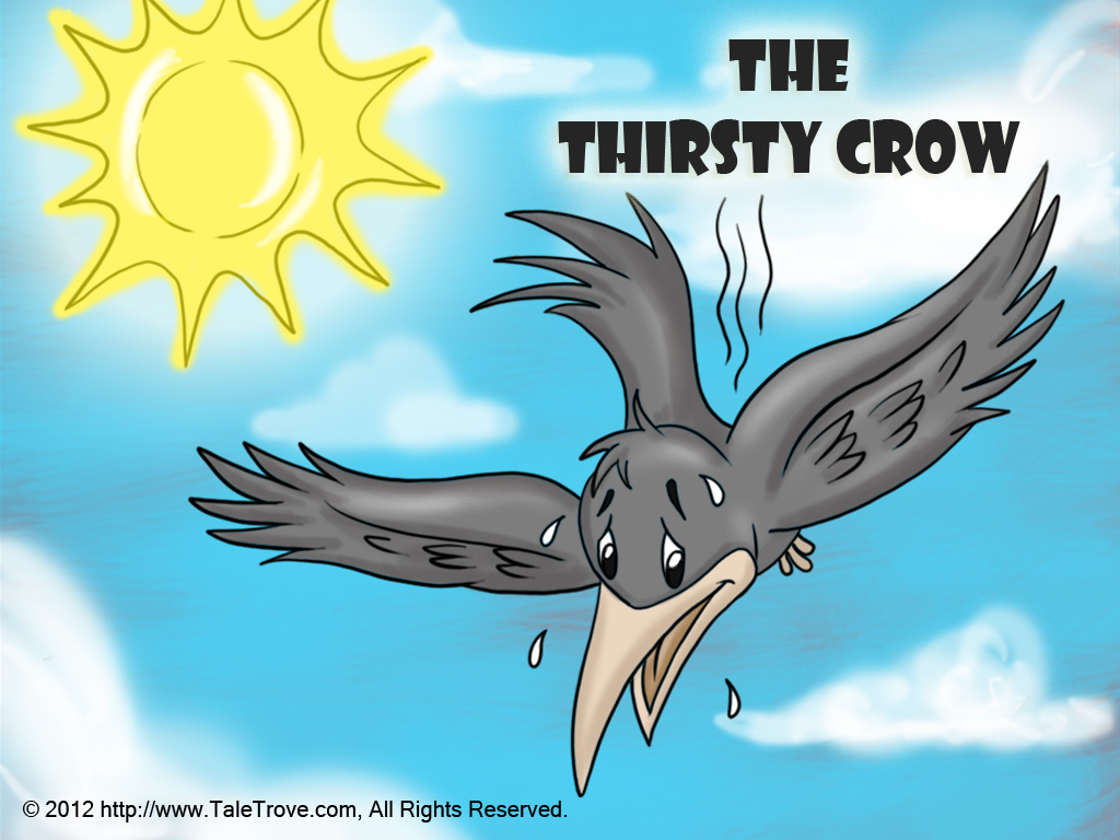 “Strange people,” he thought. “They set out food every day for us crows but forget the water. Where is a crow to find water in this hot summer sun, when all the lakes have dried up and turned into cricket playgrounds?”